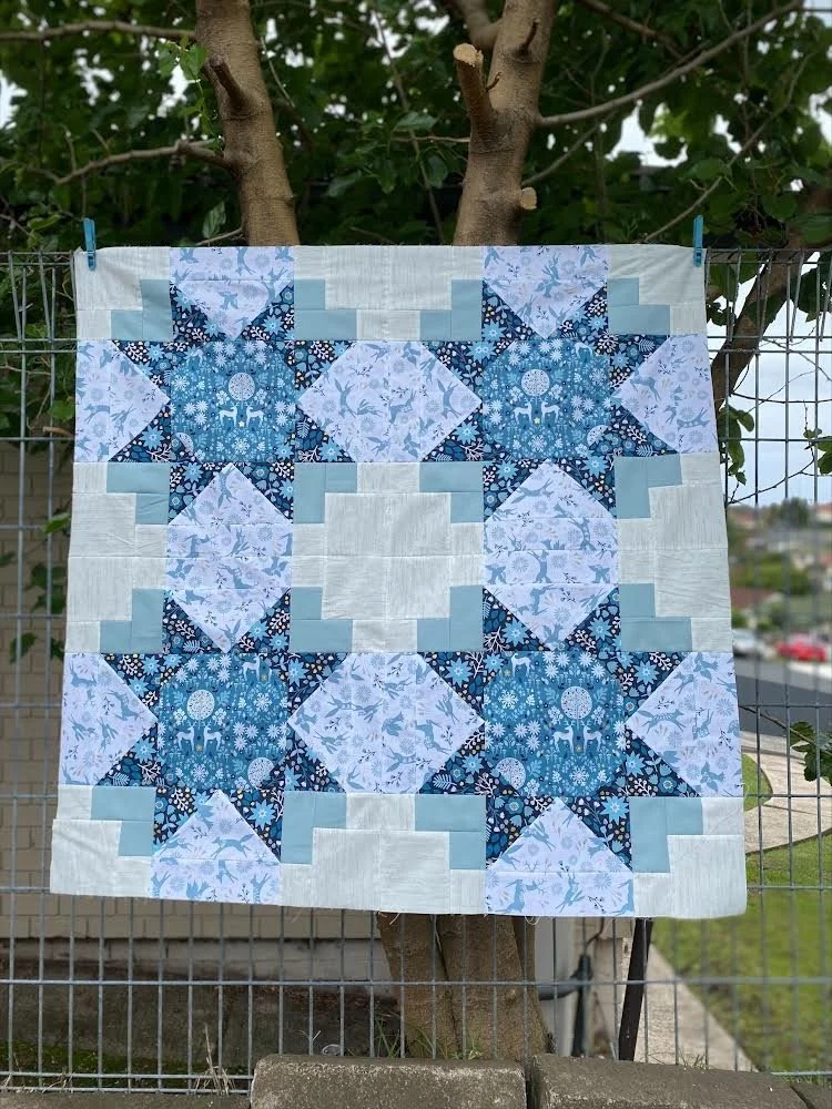 This darling quilt was created by Katherine of @KatVonDiesel! The print fabric in the stars is such a good choice! The fabrics that Katherine chose to pair with the star centers compliment it so well!