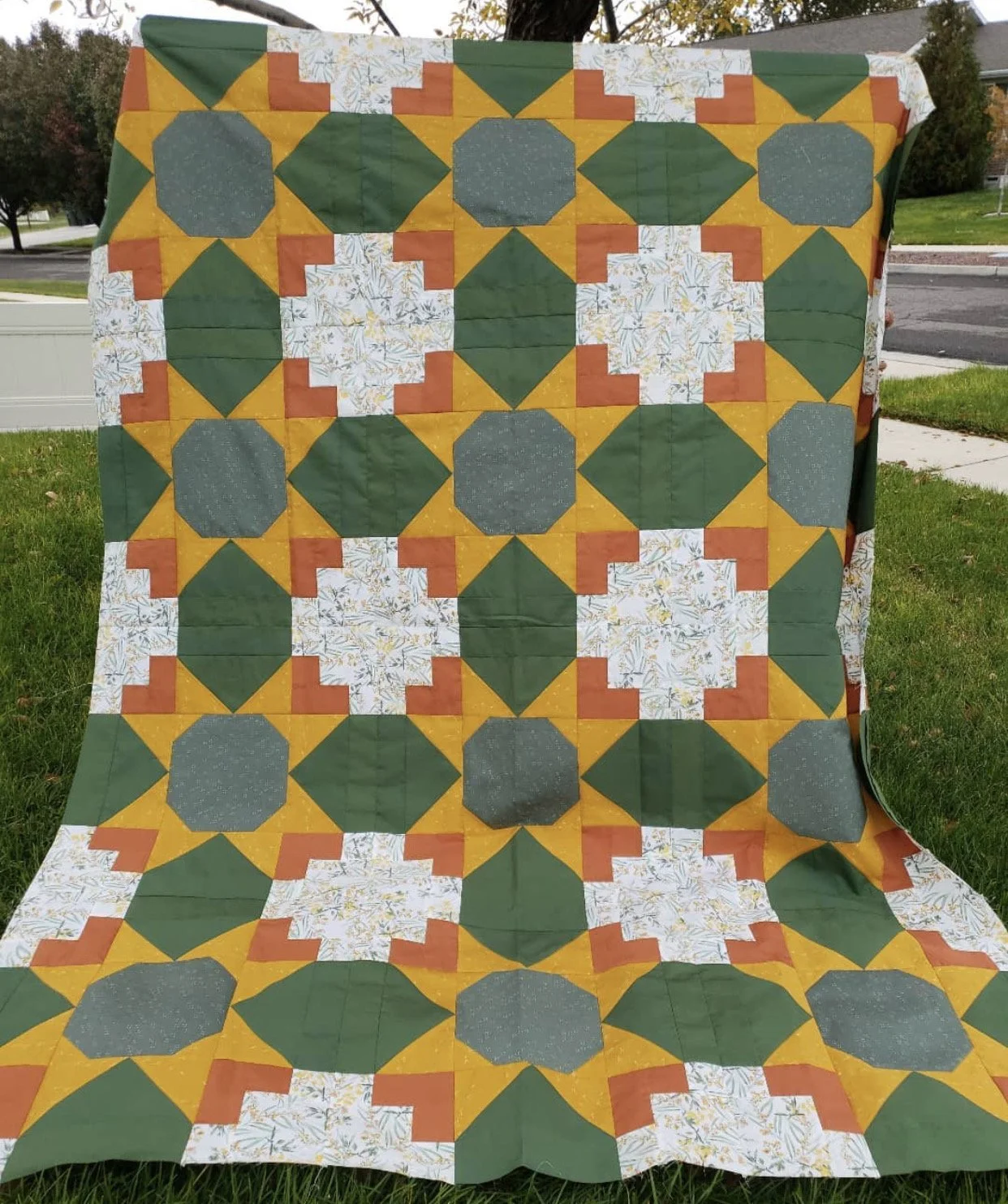 Bonnie Jean of @bonjeanski used these fabrics and created this masterpiece! Bonnie Jean also used a quilt-as-you-go method to get the quilt finished! It looks awesome, huh?!