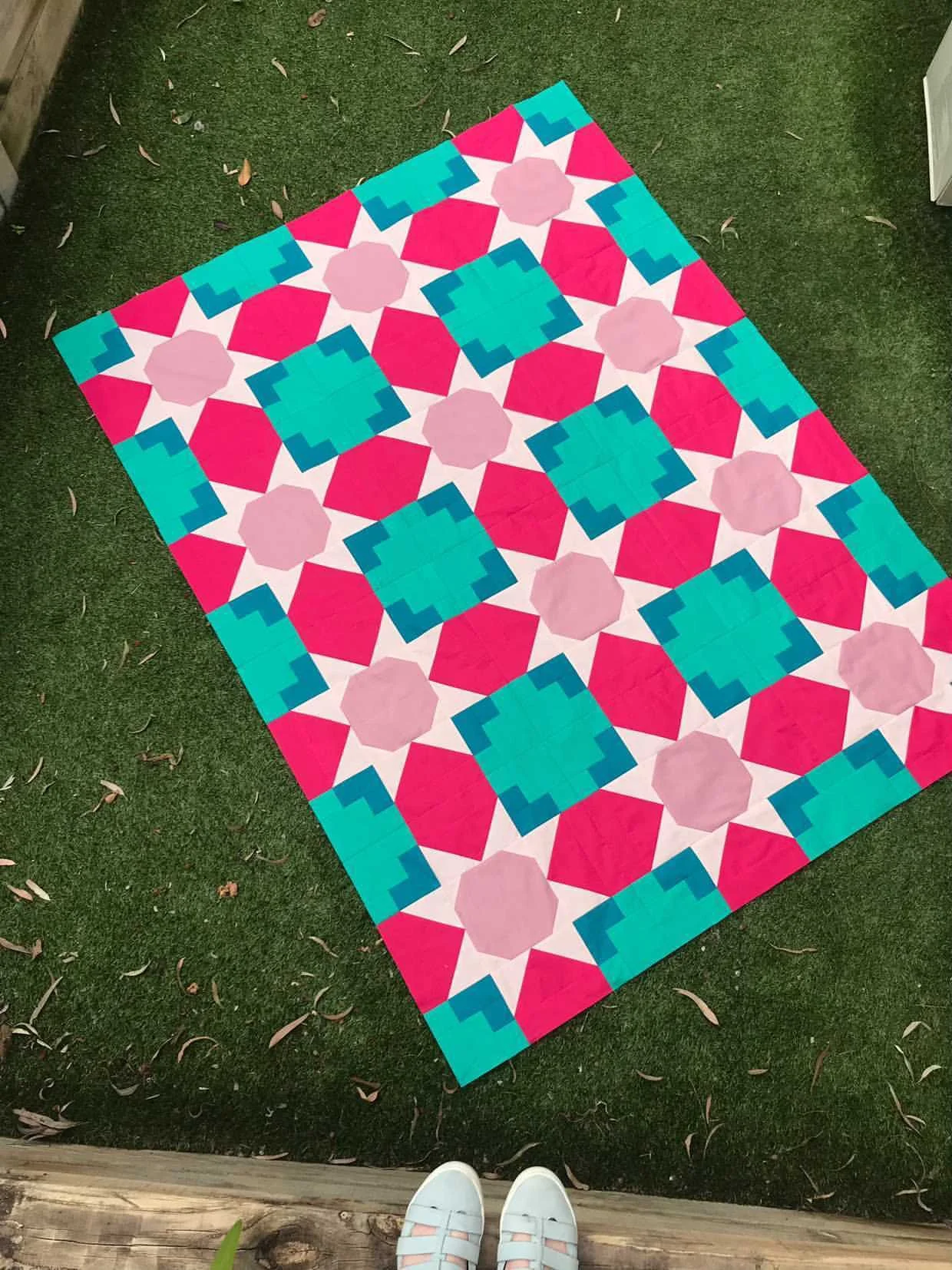Look at this bright, bold quilt that Josephine of @WhatJosephineMakes made! I am in love with this teal and pink combo! I can’t wait to see the backing fabric that is paired with this one!